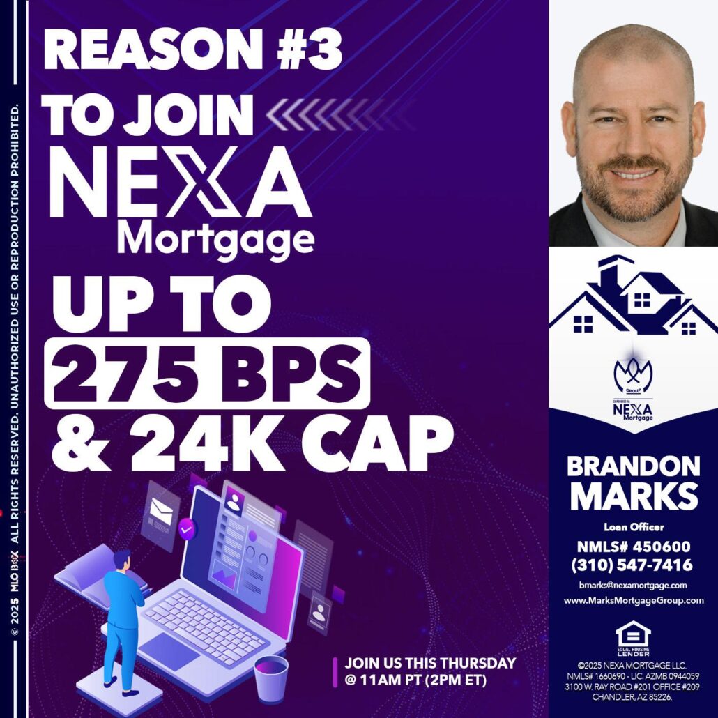Hi, my name is Brandon Marks. I’m a Loan Officer with NEXA Mortgage LLC., offering personalized mortgage solutions, fast customized quotes, great rates and service with integrity.